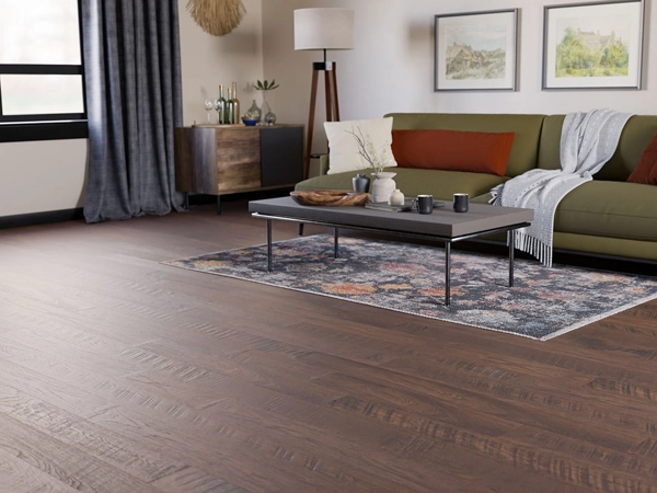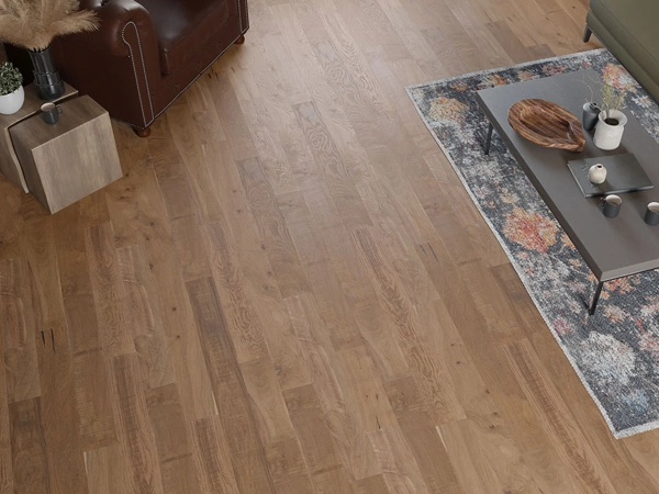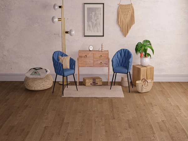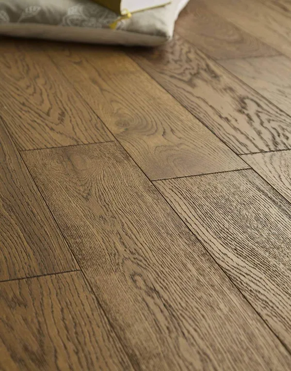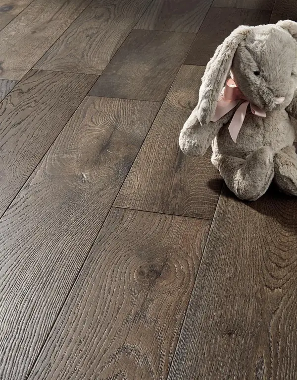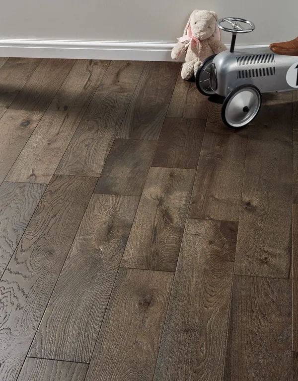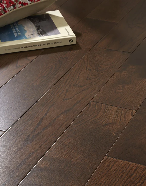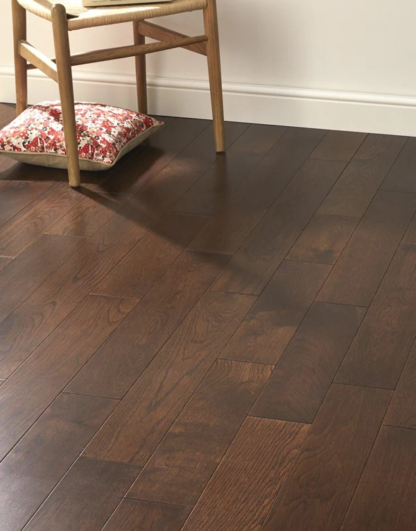 Chocolate Oak features an intense, deep brown tone that creates a bold and dramatic statement. Its rich colour is enhanced by pronounced grain patterns and natural wood marks, delivering texture, depth, and authentic character. Finished with a protective lacquer, this floor combines striking style with long-lasting durability.