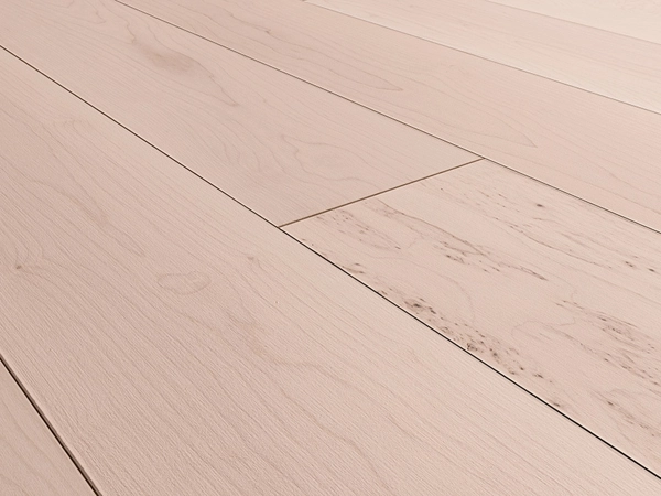 Our apartment has chevron-patterned wood maple flooring. The level of detail and the clean look were really impressive. The floor is quite amazing and seems rich.